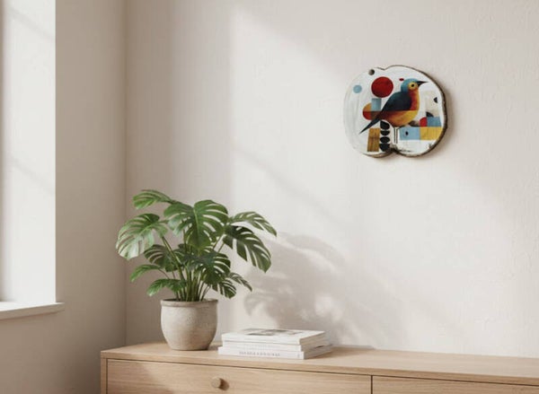 Dit bijzondere kunstwerk op hout is een stukje puur geluk voor aan de muur. De Glædesfugl is het Deense woord voor 'vreugdevogel' en past perfect bij de Træglæde Collectie (Houtvreugde). Dit is dan ook precies de emotie die dit unieke ontwerp overbrengt. Het vrolijke ontwerp van de vogel brengt een lach op je gezicht en zorgt voor een moment van blijdschap, telkens wanneer je ernaar kijkt.
